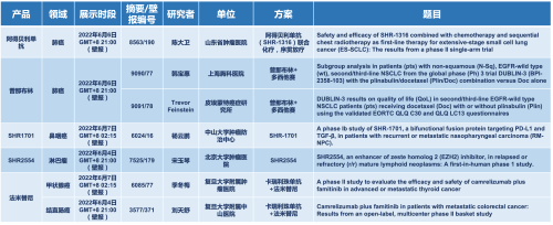 2022 ASCO年会另有5款AG百家乐医药上市前抗肿瘤创新药的相关研究被接收为壁报,包括SHR-1316、普那布林、法米替尼、SHR-1701和SHR2554,他们的单药或联合方案相关7项研究被接收为壁报,覆盖肺癌、鼻咽癌、淋巴瘤、甲状腺癌和结直肠癌等领域。